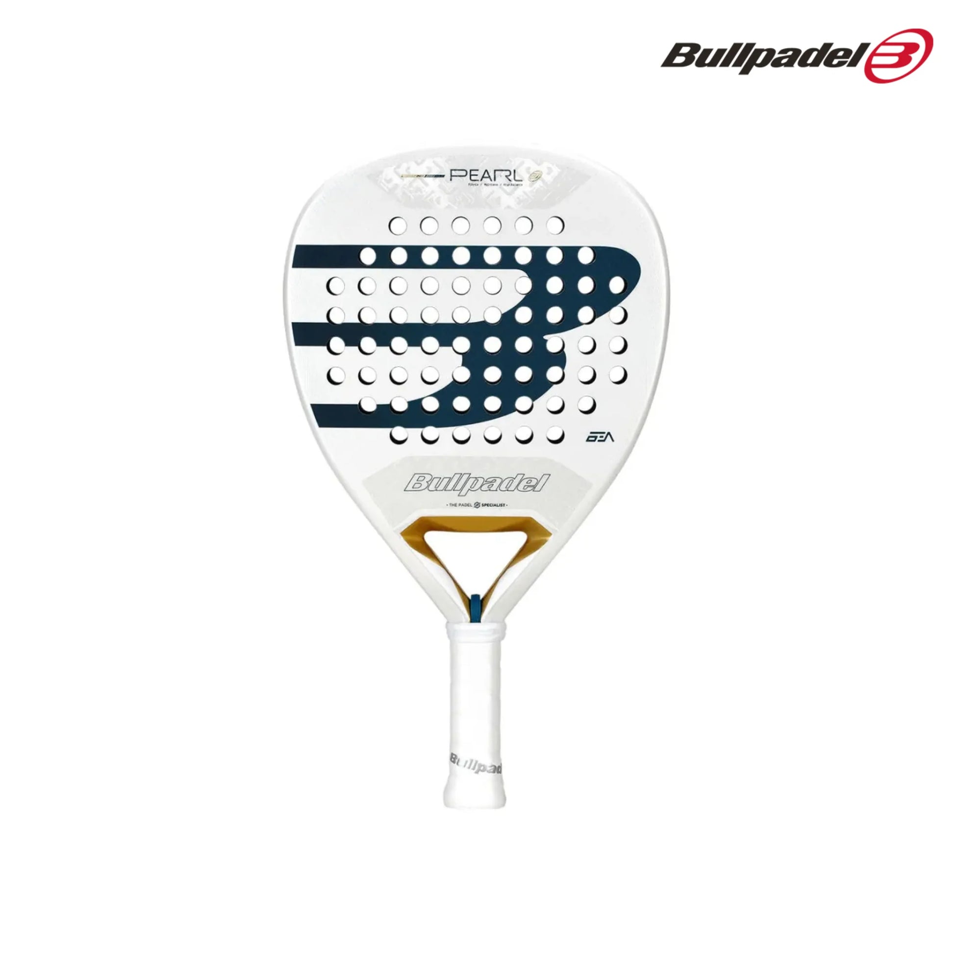 The Bullpadel Pearl 2026 padel racket is a limited-edition model designed in collaboration with professional player Bea González. Its elegant white design, highlighted by blue and gold accents, gives the racket a premium and exclusive appearance. But it’s not just about looks. This racket is built for ambitious players who want top-tier performance on every point.